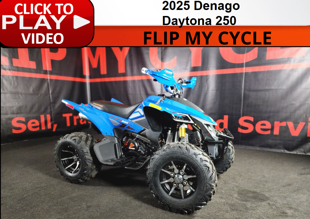 Riding the 2025 Denago Daytona 250 is all about raw, off-road fun. Its air-cooled engine delivers punchy power that’s easy to control, making it perfect for trails, jumps, and backyard ripping. Lightweight and nimble, the Daytona 250 handles tight corners and rough terrain like a champ. The suspension eats up bumps, while the responsive throttle keeps things exciting. Whether you're a weekend warrior or just getting started, this dirt bike delivers thrills without the fuss. Find your next ride at Flip My Cycle in Fayetteville, NC!