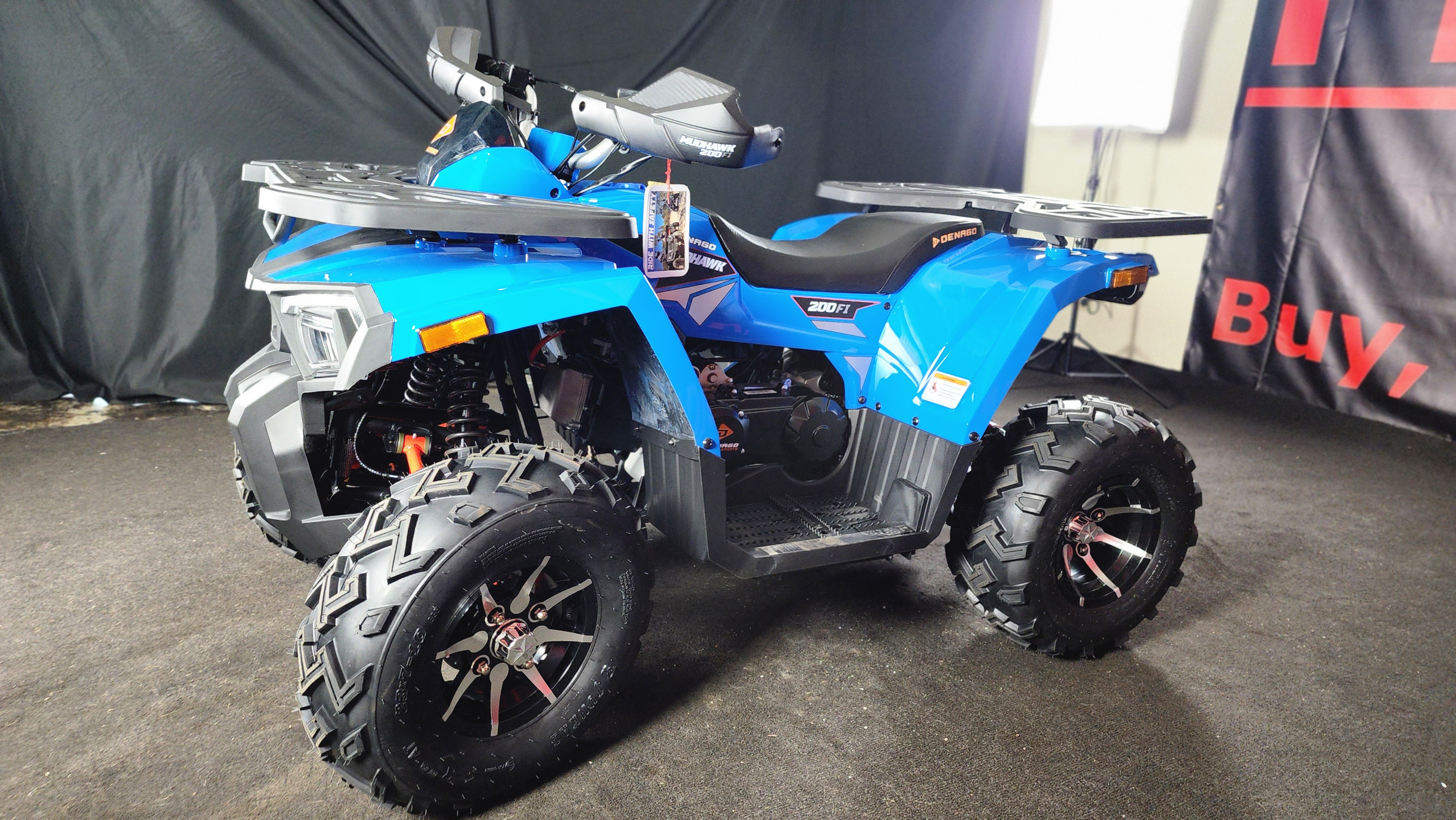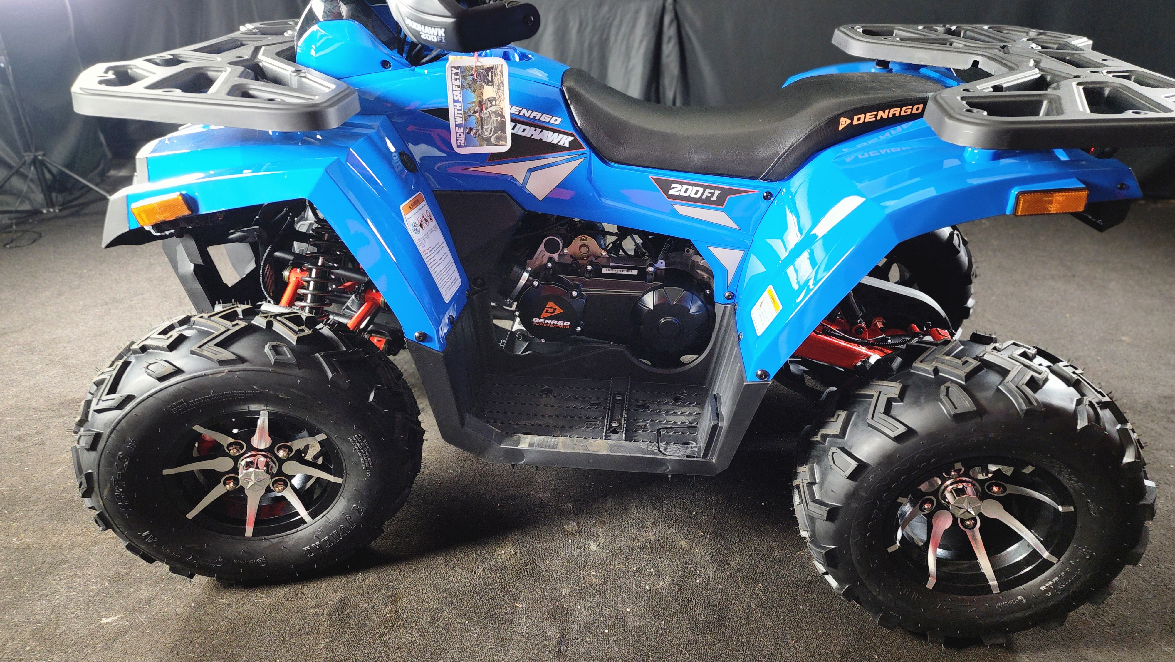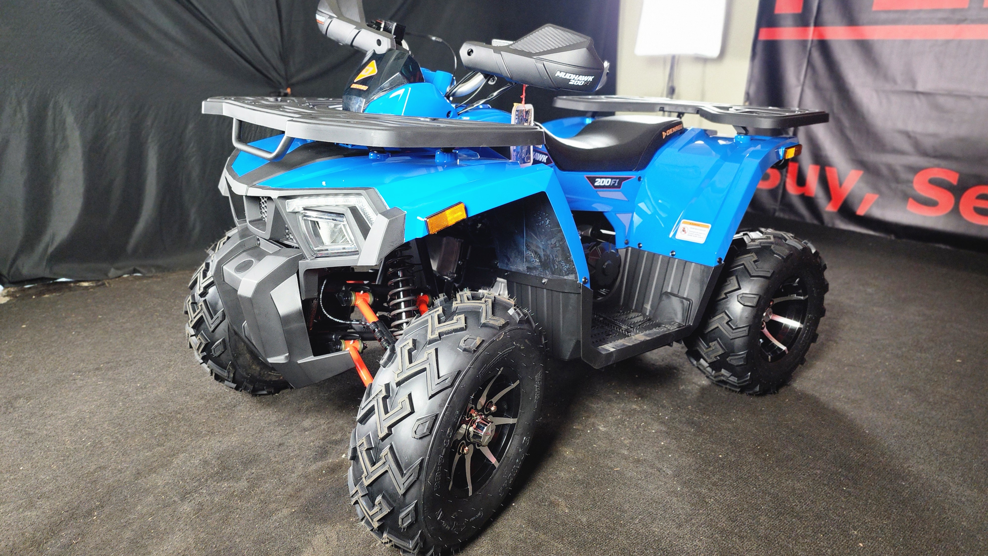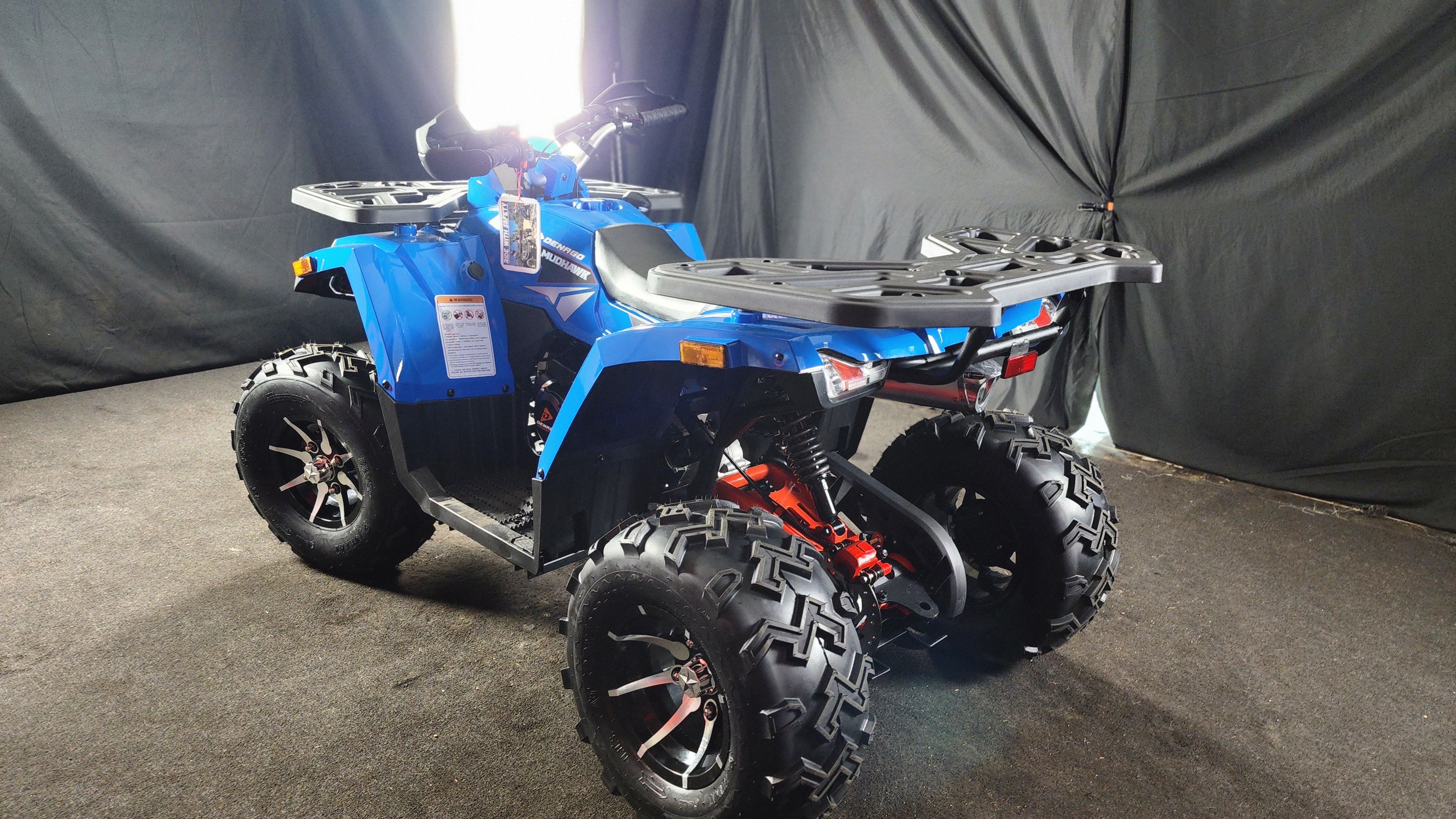 Riding the 2026 Denago Mudhawk 200 feels smooth, stable, and exciting. The 177cc engine delivers just the right amount of power for trails and open terrain, while the automatic transmission makes it easy to ride. Its suspension absorbs bumps well, giving you control and comfort even on rough paths. The ATV feels sturdy and responsive, with safety features like a throttle limiter and remote shut-off adding confidence. Whether you're a beginner or seasoned rider, the Mudhawk 200 offers a fun, reliable off-road experience every time.