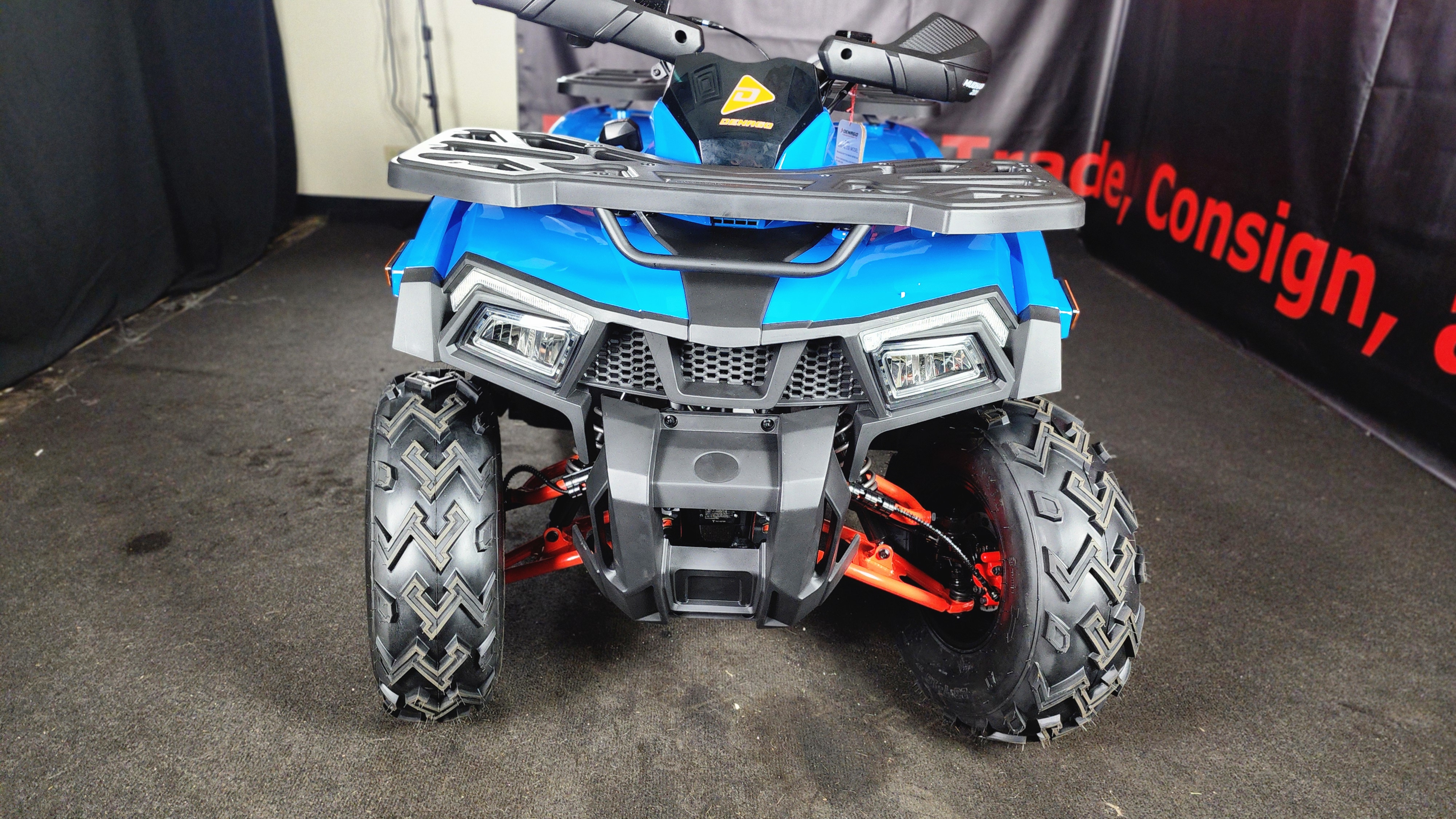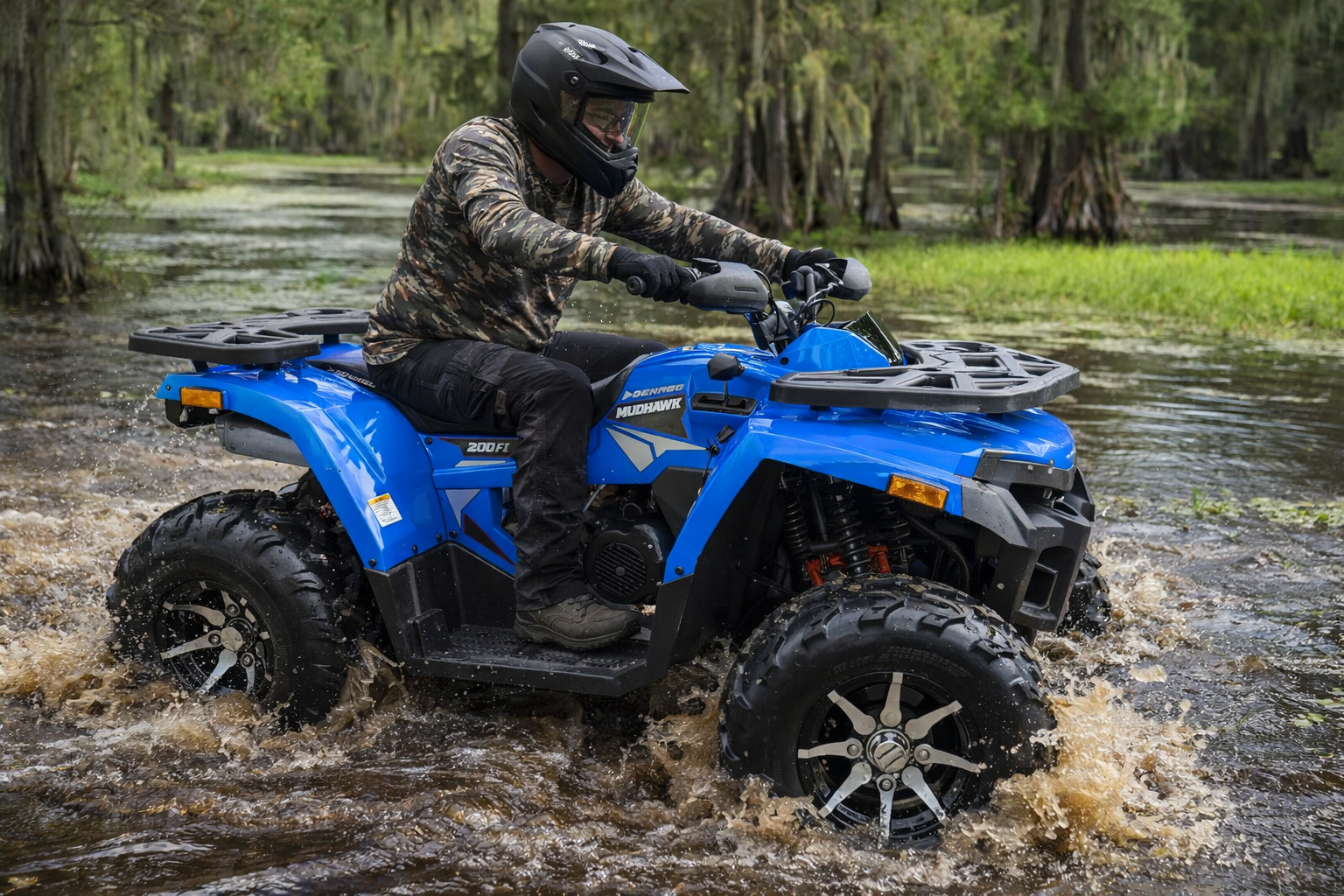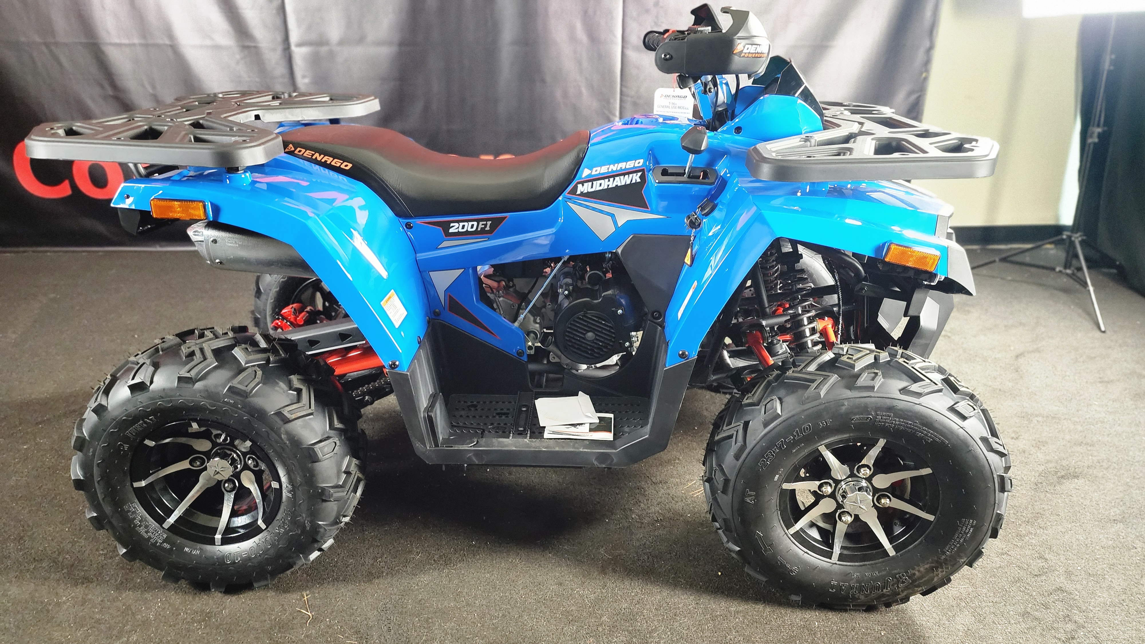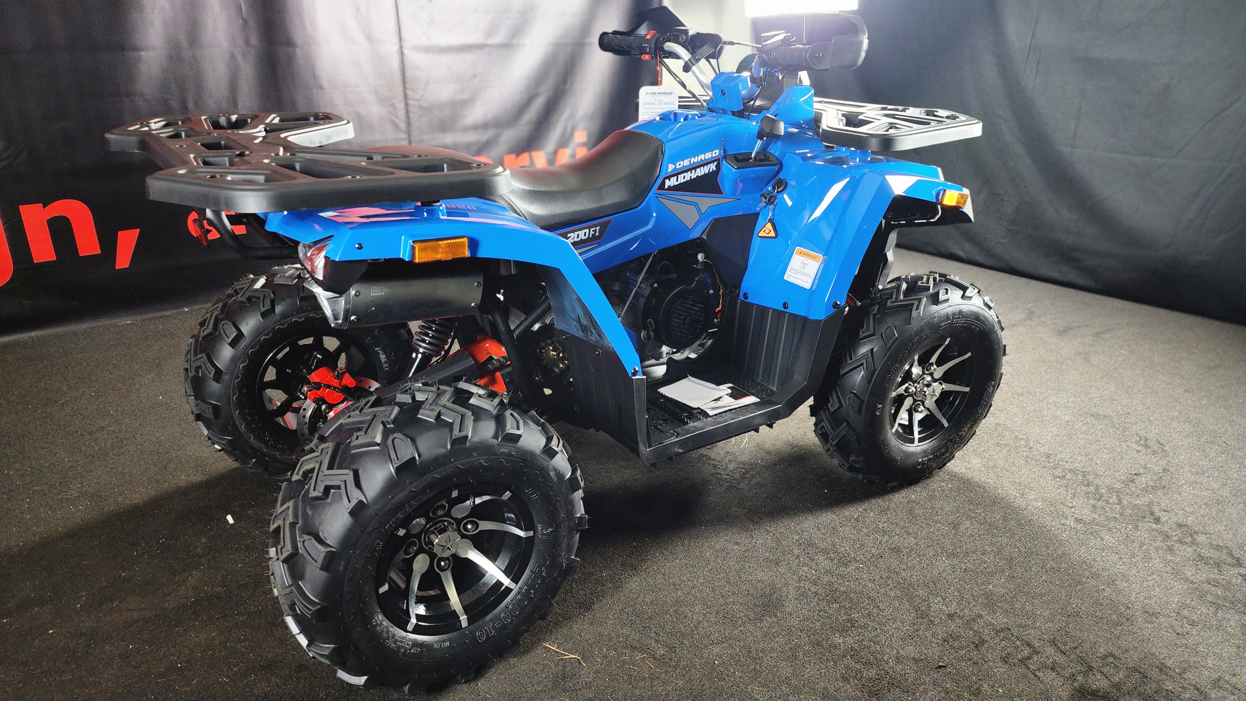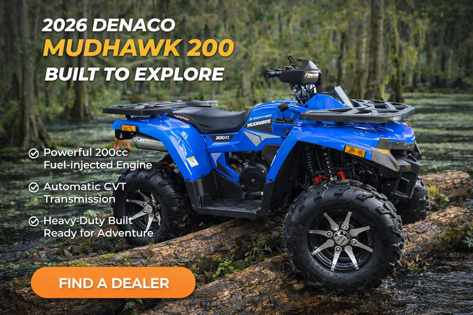 Riding the 2026 Denago Mudhawk 200 feels smooth, stable, and exciting. The 177cc engine delivers just the right amount of power for trails and open terrain, while the automatic transmission makes it easy to ride. Its suspension absorbs bumps well, giving you control and comfort even on rough paths. The ATV feels sturdy and responsive, with safety features like a throttle limiter and remote shut-off adding confidence. Whether you're a beginner or seasoned rider, the Mudhawk 200 offers a fun, reliable off-road experience every time.