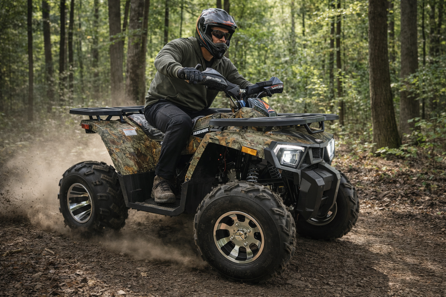 Riding the 2026 Denago Mudhawk 200 feels smooth, stable, and exciting. The 177cc engine delivers just the right amount of power for trails and open terrain, while the automatic transmission makes it easy to ride. Its suspension absorbs bumps well, giving you control and comfort even on rough paths. The ATV feels sturdy and responsive, with safety features like a throttle limiter and remote shut-off adding confidence. Whether you're a beginner or seasoned rider, the Mudhawk 200 offers a fun, reliable off-road experience every time.